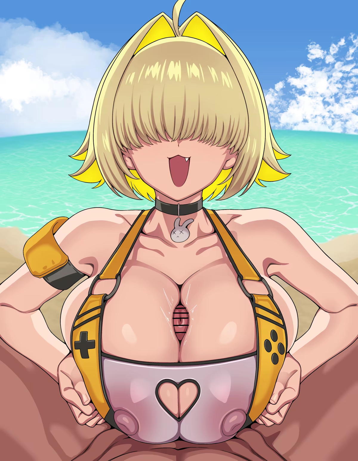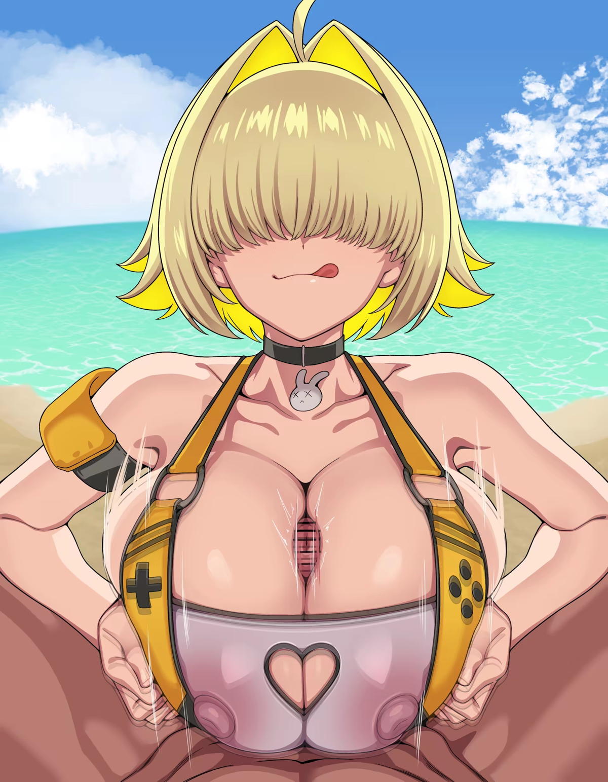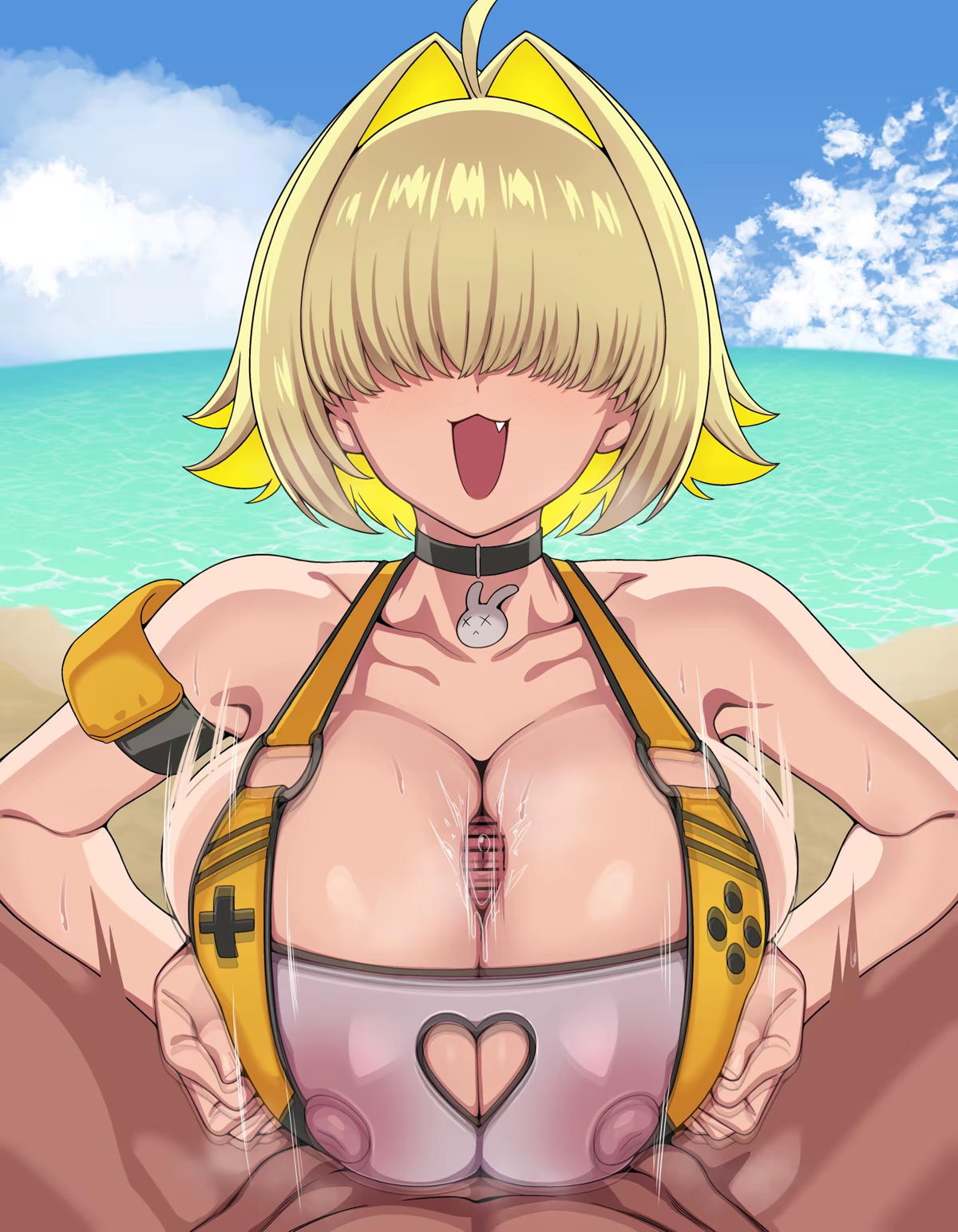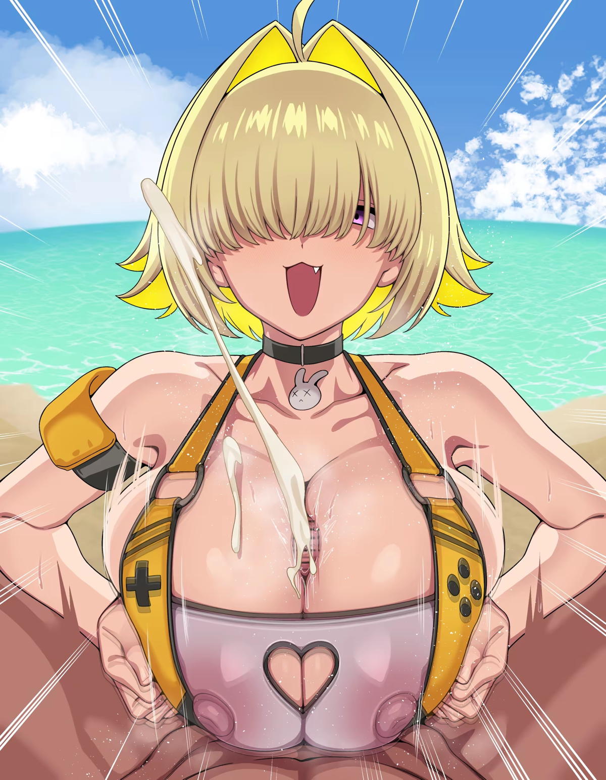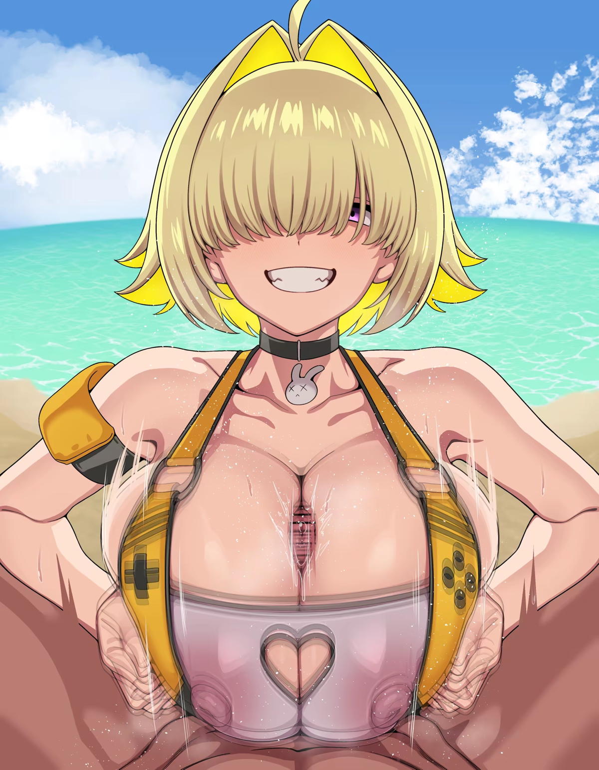 海で水着エレグがパイズリしてザー◯ンまみれになっちゃう!!